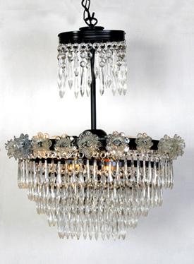 No two Charlie Smith Chandelier are the same. Each piece is individually crafted for a totally unique look by re-working antique and vintage chandeliers with crystals and new accessories.